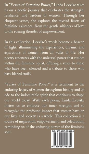 In "Verses of Feminine Power," Linda Leevike takes us on a poetic journey that celebrates the strength, resilience, and wisdom of women. Through her eloquent verses, she explores the myriad facets of feminine existence, from the gentle whispers of love to the roaring thunder of empowerment.In this collection, Leevike's words become a beacon of light, illuminating the experiences, dreams, and aspirations of women from all walks of life. Her poetry resonates with the universal power that resides within the feminine spirit, offering a voice to those who have been silenced and a tribute to those who have blazed trails."Verses of Feminine Power" is a testament to the enduring legacy of women throughout history and an ode to the indomitable spirit that continues to shape our world today. With each poem, Linda Leevike invites us to embrace our inner strength and to recognize the profound impact that women have on our lives and society as a whole. This collection is a source of inspiration, empowerment, and celebration, reminding us of the enduring power of the feminine soul. Copyright (c) 2024 Swan Charm Publishing