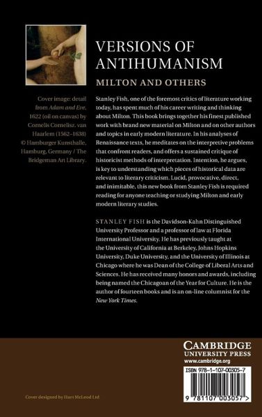 Stanley Fish, one of the foremost critics of literature working today, has spent much of his career writing and thinking about Milton. This book brings together his finest published work with brand new material on Milton and on other authors and topics in early modern literature. In his analyses of Renaissance texts, he meditates on the interpretive problems that confront readers and offers a sustained critique of historicist methods of interpretation. Intention, he argues, is key to understanding which pieces of historical data are relevant to literary criticism. Lucid, provocative, direct and inimitable, this new book from Stanley Fish is required reading for anyone teaching or studying Milton and early modern literary studies.