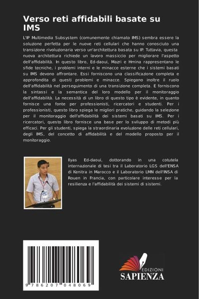 L'IP Multimedia Subsystem (comunemente chiamato IMS) sembra essere la soluzione perfetta per le nuove reti cellulari che hanno conosciuto una transizione rivoluzionaria verso un'architettura basata su IP. Tuttavia, questa nuova architettura richiede un lavoro massiccio per migliorare l'aspetto dell'affidabilità. In questo libro, Ed-daoui, Mazri e Hmina rappresentano le sfide tecniche, i problemi interni e le minacce esterne che i sistemi basati su IMS devono affrontare. Essi forniscono una classificazione completa e approfondita di questi problemi e minacce. Spiegano inoltre il ruolo dell'affidabilità nel perseguimento di una transizione completa. E forniscono la sintassi e la semantica del loro modello per il monitoraggio dell'affidabilità. La necessità di un libro di questo tipo è evidente, in quanto fornisce una fonte per professionisti, ricercatori e studenti. Per i professionisti, questo libro spiega le migliori pratiche, guidando la selezione per il monitoraggio dell'affidabilità dei sistemi basati su IMS. Per i ricercatori, questo libro fornisce una base per lo sviluppo di metodi più efficaci. Per gli studenti, spiega la straordinaria evoluzione delle reti cellulari, degli IMS, del concetto di affidabilità e del modello proposto per il monitoraggio.