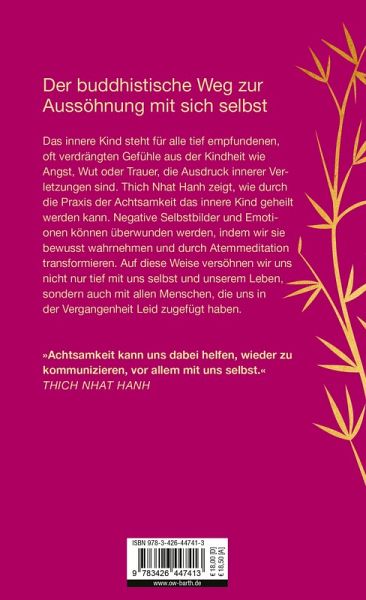 Dieser berühmte Satz ist für alle gültig, die sich von Thich Nhat Hanh leiten lassen. Die Folgen seelischer Verletzungen in der Kindheit wie Angst und Verlassenheit oder Wut und Trauer wirken bis in unsere Zellen und blockieren unser inneres Wachstum. Thich Nhat Hanh zeigt, dass meist schon unsere Eltern oder sogar frühere Generationen dieselben belastenden Gefühlsmuster in sich getragen und weitervererbt haben. Deshalb ist es wichtig und sinnvoll, als Erwachsener zu dem verwundeten inneren Kind Kontakt aufzunehmen. Das gelingt besonders im Fokus bewusster, achtsamer Wahrnehmung und damit verbundener Atempraxis. Thich Nhat Hanh erklärt anschaulich, wie die Heilung deines inneren Kindes gelingen kann: mithilfe von Achtsamkeit und Meditation aus der Praxis des Buddhismus. Auf diese Weise kann es zu einer tiefgreifenden Transformation kommen. wir versöhnen uns nicht nur tief mit uns selbst und unserem Leben, sondern auch mit allen Menschen, die uns in der Vergangenheit Leid zugefügt haben.