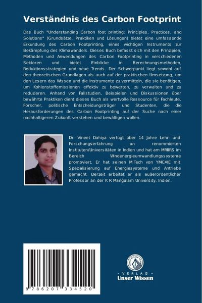Das Buch "Understanding Carbon foot printing: Principles, Practices, and Solutions" (Grundsätze, Praktiken und Lösungen) bietet eine umfassende Erkundung des Carbon Footprinting, eines wichtigen Instruments zur Bekämpfung des Klimawandels. Dieses Buch befasst sich mit den Prinzipien, Methoden und Anwendungen des Carbon Footprinting in verschiedenen Sektoren und bietet Einblicke in Berechnungsmethoden, Reduktionsstrategien und neue Trends. Der Schwerpunkt liegt sowohl auf den theoretischen Grundlagen als auch auf der praktischen Umsetzung, um den Lesern das Wissen und die Instrumente zu vermitteln, die sie benötigen, um Kohlenstoffemissionen effektiv zu bewerten, zu verwalten und zu reduzieren. Anhand von Fallstudien, Beispielen und Diskussionen über bewährte Praktiken dient dieses Buch als wertvolle Ressource für Fachleute, Forscher, politische Entscheidungsträger und Studenten, die die Herausforderungen des Carbon Footprinting auf der Suche nach einer nachhaltigeren Zukunft verstehen und bewältigen wollen.