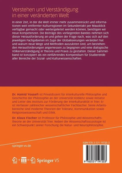 In einer Zeit, in der die Welt immermehr zusammenrückt und Informationen weit entfernter Kulturregionen imSekundentakt per Mausklick verfügbar gemacht oder weitergeleitet werden können,benötigen wir neue Kompetenzen. Die Beiträge des vorliegenden Bandes nehmensich dieser Herausforderung an und gehen der Frage nach, was sich auf denjeweiligen Fachgebieten im Zuge der Globalisierungen verändert hat und warumneue Wege und Methoden auszuloten sind, um bestehenden Herausforderungenangemessen zu begegnen und eine dialogische Völkerverständigung in Theorie undPraxis zu gestalten. Dieser Sammelband ist konzipiert alsein einführendes Kompendium für Studierende aller Bereiche der Sozial- undKulturwissenschaften.