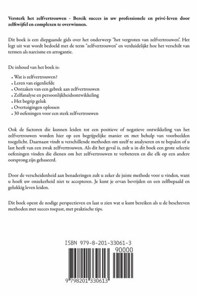 Versterk het zelfvertrouwen - Bereik succes in uw professionele en privé-leven door zelftwijfel en complexen te overwinnen. Dit boek is een diepgaande gids over het onderwerp "het vergroten van zelfvertrouwen". Het legt uit wat wordt bedoeld met de term "zelfvertrouwen" en verduidelijkt hoe het verschilt van termen als narcisme en arrogantie. De inhoud van het boek is:Wat is zelfvertrouwen? Leren van eigenliefde Oorzaken van een gebrek aan zelfvertrouwen Zelfanalyse en persoonlijkheidsontwikkeling Het begrip geluk Overtuigingen oplossen 30 oefeningen voor een sterk zelfvertrouwen Ook de factoren die kunnen leiden tot een positieve of negatieve ontwikkeling van het zelfvertrouwen worden hier op een begrijpelijke manier en met behulp van voorbeelden toegelicht. Daarnaast vindt u verschillende methoden om uzelf te analyseren en te bepalen of u last heeft van een zwak zelfvertrouwen. Als dit het geval is, zult u in dit boek een grote selectie oefeningen vinden die dienen om het zelfvertrouwen te verbeteren en die elk op een andere oorsprong zijn gebaseerd. Door de verscheidenheid aan benaderingen zult u zeker de juiste methode voor u vinden, want u hoeft uw onzekerheid niet te accepteren. Je kunt je ervan bevrijden en een zelfbepaald en gelukkig leven leiden. Dit boek opent de nodige perspectieven en laat u zien wat u kunt bereiken als u de beschreven methoden met succes toepast, met praktische tips.