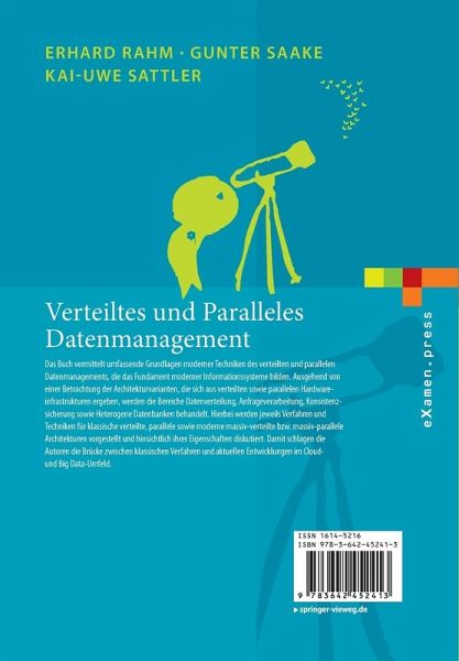 Das Buch vermittelt umfassende Grundlagen moderner Techniken des verteilten und parallelen Datenmanagements, die das Fundament moderner Informationssysteme bilden. Ausgehend von einer Betrachtung der Architekturvarianten, die sich aus verteilten sowie parallelen Hardwareinfrastrukturen ergeben, werden die Bereiche Datenverteilung, Anfrageverarbeitung sowie Konsistenzsicherung behandelt. Hierbei werden jeweils Verfahren und Techniken für klassische verteilte, parallele sowie moderne massiv-verteilte bzw. massiv-parallele Architekturen vorgestellt und hinsichtlich ihrer Eigenschaften diskutiert. Damit schlagen die Autoren die Brücke zwischen klassischen Verfahren und aktuellen Entwicklungen im Cloud- und Big Data-Umfeld.