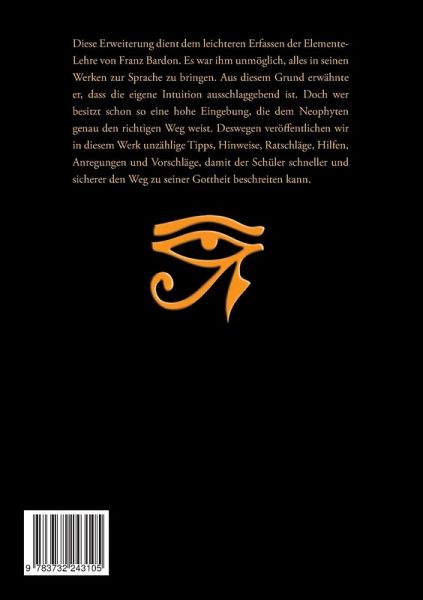 Diese Erweiterung dient dem leichteren Erfassen der Elemente-Lehre von Franz Bardon. Es war ihm unmöglich, alles in seinem "Weg zum wahren Adepten" zur Sprache zu bringen. Aus diesem Grund erwähnte er, dass die eigene Intuition ausschlaggebend ist. Doch wer besitzt schon so eine hohe Eingebung, die dem Neophyten genau den richtigen Weg weist. Deswegen veröffentlichen wir in diesem Werk unzählige Tipps, Hinweise, Ratschläge, Hilfen, Anregungen und Vorschläge, damit der Schüler schneller und sicherer den Weg zu seiner Gottheit beschreiten kann.Einleitung:Feuer-ElementVorwort:Zu den Problemen1. Schlechte Konzentration:den Gedanken nicht halten könnenProbleme im Alltag:a) Arbeitb) Familiec) Schmerzend) Müdigkeite) Unlustf) Unruhe2. Sorgen über den Weg, ihn nicht zu schaffen3. Schwankungen bei den Übungen4. Leerer Kopf, verwirrt, durch den Wind5. Probleme der Wachsamkeit bzw. abdriften in andere gedankliche Bereiche6. Keine Kraft zum Üben7. Tipps zur Geistesschulung:a) Gedankenbeherrschungb) bei Gedanklichem Angriff durch Schemenc) Meditationen8. Tipps zur Seelenschulung: usw. usw.