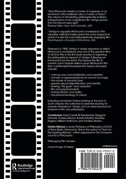Introduction Katalin Makkai 1. Magic and Art in Vertigo Nickolas Pappas 2. Scottie's Dream Judy's Plan Madeleine's Revenge William Rothman 3. Vertigo: The Impossible Love Noël Carroll 4. Offensive Charles Warren 5. A Made-to-Order Witness: Women's Knowledge in Vertigo Gregg M. Horowitz 6. Vertigo and Being Seen Katalin Makkai 7. Being-in-(Techni)Color Eli Friedlander 8. Vertigo and the Spectator of Film Analysis Andrew Klevan. Index