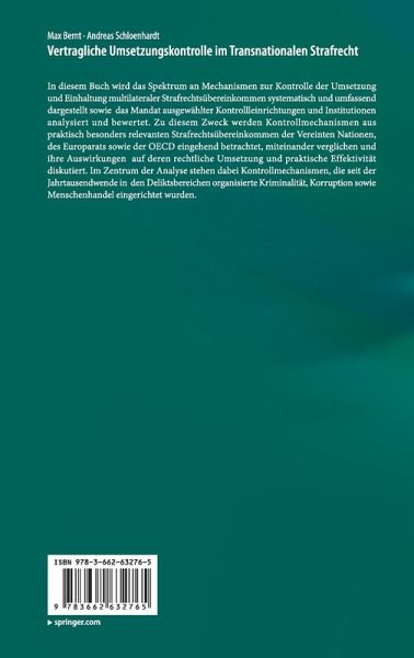 In diesem Buch wird das Spektrum an Mechanismen zur Kontrolle der Umsetzung und Einhaltung multilateraler Strafrechtsübereinkommen systematisch und umfassend dargestellt sowie das Mandat ausgewählter Kontrollleinrichtungen und Institutionen analysiert und bewertet. Zu diesem Zweck werden Kontrollmechanismen aus praktisch besonders relevanten Strafrechtsübereinkommen der Vereinten Nationen, des Europarats sowie der OECD eingehend betrachtet, miteinander verglichen und ihre Auswirkungen auf deren rechtliche Umsetzung und praktische Effektivität diskutiert. Im Zentrum der Analyse stehen dabei Kontrollmechanismen, die seit der Jahrtausendwende in den Deliktsbereichen organisierte Kriminalität, Korruption sowie Menschenhandel eingerichtet wurden.