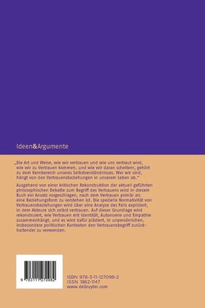 Vertrauen ist aus unserem Leben nicht wegzudenken. Es stellt die Bedingung für zentrale Formen der Kooperation dar und ist Bestandteil unserer persönlichen Beziehungen. Was ist Vertrauen aber? Und wann haben wir Gründe, anderen Personen zu vertrauen? Das Buch setzt sich mit diesen fundamentalen Fragen aus einer philosophischen Perspektive auseinander und nimmt die Dynamiken in den Blick, die charakteristisch für Vertrauensbeziehungen sind.