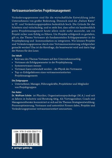 Veränderungsprozesse sind für die wirtschaftliche Entwicklung jedes Unternehmens von großer Bedeutung. Dennoch sind die "Failure Rates" in IT- und Veränderungsprojekten bedenklich hoch. Die Gründe für das Scheitern sind vielschichtig, und es steht fest, dass selbst ein handwerklich gutes Projektmanagement heute allein nicht mehr ausreicht, um ein Projekt sicher zum Erfolg zu führen. Um Projekte erfolgreich zu gestalten, gilt es, das Thema Vertrauen als fundamentalen Erfolgsparameter in die Projektplanung und -kommunikation zu integrieren. Wie können Projekte und Veränderungsprozesse durch eine Vertrauensorientierung erfolgreicher gemacht werden? Das ist die Kernfrage, die beantwortet wird und darin liegt der Nutzen für den Leser.