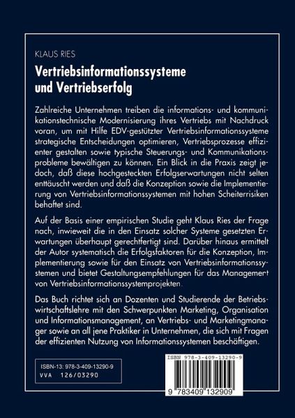 Zahlreiche Unternehmen treiben die informations- und kommunikationstechnische Modernisierung ihres Betriebs voran, um mit Hilfe EDV-gestützter Systeme strategische Entscheidungen optimieren, Vertriebsprozesse effizienter gestalten sowie typische Steuerungs- und Kommunikationsprobleme bewältigen zu können. Die Praxis zeigt jedoch, daß diese Erfolgserwartungen nicht selten enttäuscht werden und daß die Konzeption sowie die Implementierung von Vertriebsinformationssystemen mit hohen Risiken behaftet sind. Auf der Basis einer empirischen Studie geht Klaus Ries der Frage nach, inwieweit die in den Einsatz solcher Systeme gesetzten Erwartungen gerechtfertigt sind. Darüber hinaus ermittelt der Autor systema tisch die Erfolgsfaktoren für die Konzeption, Implementierung sowie für den Einsatz von Vertriebsinformationssystemen und bietet Gestaltungsempfehlungen für das Management von Vertriebsinformationssystemprojekten. Verzeichnis: Erfolgsfaktoren für Konzeption, Implementierung sowie Einsatz von Vertriebsinformationssystemen und Gestaltungsempfehlungen für das Management von Vertriebsinformationssystemprojekten.