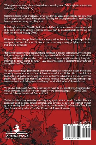 Someone is stalking Devon Woodward. They've been there all along, since before she was born, going back to her grandmother's time. Waiting for her. Watching. And the people who should be able to help, her own parents, are making everything worse. Devon is right to be afraid. Verushka, both victim and villain, is a half-human witch from the other side of the world. She will do anything to get what she needs from the Woodward family, but she may have finally met her match in young Devon. Will family conflict sabotage Devon's efforts to escape and put her in even greater danger? In this multi-perspective novel that is part fairy tale and part horror story, a young girl fights to uncover the truth and save her own life.