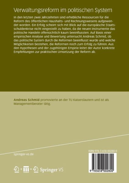 In den letzten zwei Jahrzehnten sind erhebliche Ressourcen für die Reform des öffentlichen Haushalts- und Rechnungswesens aufgewendet worden. Ein Erfolg scheint sich mit Blick auf die europäische Staatsschuldenkrise nicht eingestellt zu haben, da die neuen Instrumente das politische Handeln offensichtlich kaum beeinflussten. Auf Basis einer empirischen Analyse und Bewertung untersucht Andreas Schmid, ob das politische System durch die Reformen beeinflusst wurde und welche Möglichkeiten bestehen, die Reformen noch zum Erfolg zu führen. Aus den Hypothesen und der zugehörigen Empirie leitet der Autor konkrete Empfehlungen zur praktischen Umsetzung der Reform ab.