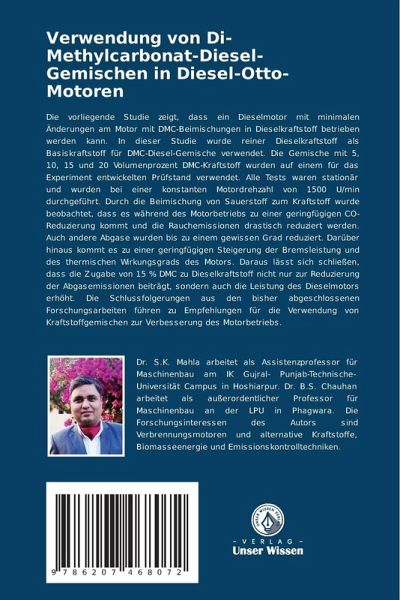 Die vorliegende Studie zeigt, dass ein Dieselmotor mit minimalen Änderungen am Motor mit DMC-Beimischungen in Dieselkraftstoff betrieben werden kann. In dieser Studie wurde reiner Dieselkraftstoff als Basiskraftstoff für DMC-Diesel-Gemische verwendet. Die Gemische mit 5, 10, 15 und 20 Volumenprozent DMC-Kraftstoff wurden auf einem für das Experiment entwickelten Prüfstand verwendet. Alle Tests waren stationär und wurden bei einer konstanten Motordrehzahl von 1500 U/min durchgeführt. Durch die Beimischung von Sauerstoff zum Kraftstoff wurde beobachtet, dass es während des Motorbetriebs zu einer geringfügigen CO-Reduzierung kommt und die Rauchemissionen drastisch reduziert werden. Auch andere Abgase wurden bis zu einem gewissen Grad reduziert. Darüber hinaus kommt es zu einer geringfügigen Steigerung der Bremsleistung und des thermischen Wirkungsgrads des Motors. Daraus lässt sich schließen, dass die Zugabe von 15 % DMC zu Dieselkraftstoff nicht nur zur Reduzierung der Abgasemissionen beiträgt, sondern auch die Leistung des Dieselmotors erhöht. Die Schlussfolgerungen aus den bisher abgeschlossenen Forschungsarbeiten führen zu Empfehlungen für die Verwendung von Kraftstoffgemischen zur Verbesserung des Motorbetriebs.