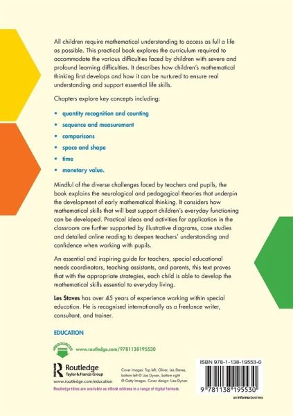 This practical book explores the curriculum required to accommodate the various difficulties faced by children with severe and profound learning difficulties. It describes how childrenâ s mathematical thinking first develops and how it can be nurtured to ensure real understanding, and support essential lifeskills.