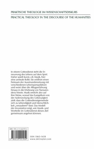 A church service is concerned with the renewal of life. Thus art, e.g. music, plays a central role: it gives scope to deal with different perspectives on life and reaches beyond every-day experience to transcendental experience. In its own way, music achieves the objective at which the gospel of the crucifixion and resurrection aims: the worshiping community is "enchanted" into becoming alive and human. The model of incantation demonstrates how music and words can combine in liturgy to achieve this goal.