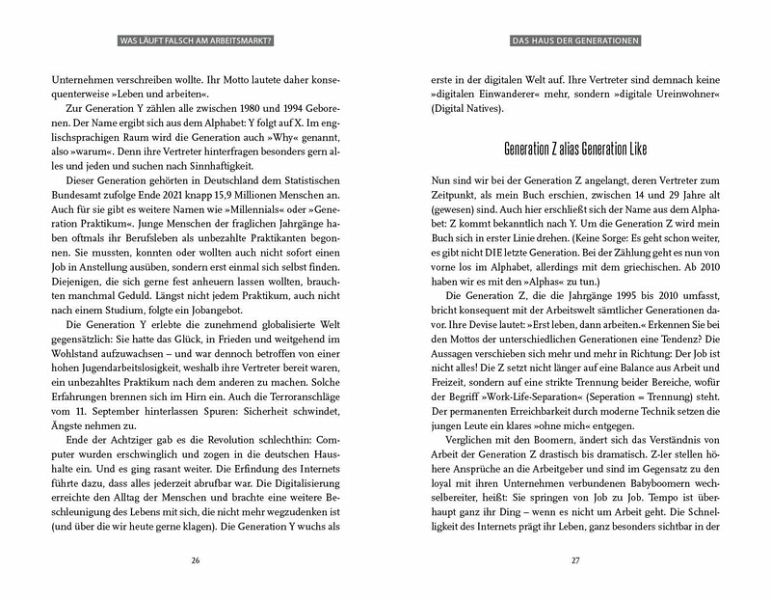 Autorin Susanne Nickel will in diesem Buch nicht nur Missstände aufzeigen, warnen und zur Diskussion anregen, sondern praktikable Lösungen finden und zum konkreten Handeln auffordern. Denn sie glaubt: Die Generation Z und die Boomer könn(t)en viel voneinander lernen. Gut gefallen hat mir die klare Struktur und die konstruktive Kritik, die auch die Firmenchefs nicht außen vor lässt. In dieser schwierigen Lage ist partnerschaftliches Miteinander der Generationen das Gebot der Stunde.