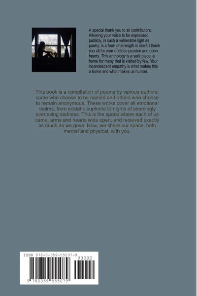 This book is an anthology of work collected from contemporary writers who had not previously had an opportunity to get their work out into the ever expansive world of literature. Containing poetry about everything from devastating loss of love, to expansive revelations about oneself, this anthology is home to all stories that originate from the bottom of the heart. Contributors have a range of perspectives that vary in each and every direction, many are from different parts of the world, and many exist in different generations, but they all can find comfort in the relatability that poetry presents. Using media as a way of expression, as this day and age is so used to doing, allows for a connection between author and audience that is over shadowed far too often with unspoken words and miscommunication. In the world of literature, miscommunications only lead to more advanced abilities to connect, interact, and empathize with one another.