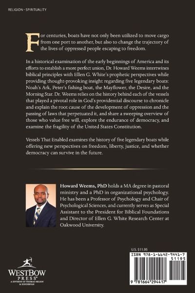 For centuries, boats have not only been utilized to move cargo from one port to another, but also to change the trajectory of the lives of oppressed people escaping to freedom. In a historical examination of the early beginnings of America and its efforts to establish a more perfect union, Dr. Howard Weems intertwines biblical principles with Ellen G. White's prophetic perspectives while providing thought-provoking insight regarding five legendary boats: Noah's Ark, Peter's fishing boat, the Mayflower, the Desire, and the Morning Star. Dr. Weems relies on the history behind each of the vessels that played a pivotal role in God's providential discourse to chronicle and explain the root cause of the development of oppression and the passing of laws that perpetuated it, and share a sweeping overview of those who value free will, explore the endurance of democracy, and examine the fragility of the United States Constitution. Vessels That Enabled examines the history of five legendary boats while offering new perspectives on freedom, liberty, justice, and whether democracy can survive in the future.