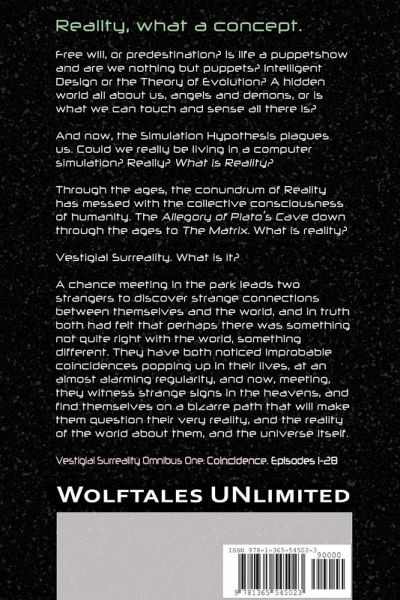 Reality, what a concept. Is life a puppet show and are we nothing but puppets? A hidden world all about us, angels and demons, or is what we can touch and sense all there is? And now, the Simulation Hypothesis plagues us. Could we really be living in a computer simulation? Through the ages, the conundrum of Reality has messed with the collective consciousness of humanity. The Allegory of Plato's Cave down through the ages to The Matrix. A chance meeting in the park leads two strangers to discover strange connections between themselves and the world, and in truth both had felt that perhaps there was something not quite right with the world, something different. They have both noticed improbable coincidences popping up in their lives, at an almost alarming regularity, and now, meeting, they witness strange signs in the heavens, and find themselves on a bizarre path that will make them question their very reality, and the reality of the world about them, and the universe itself.
