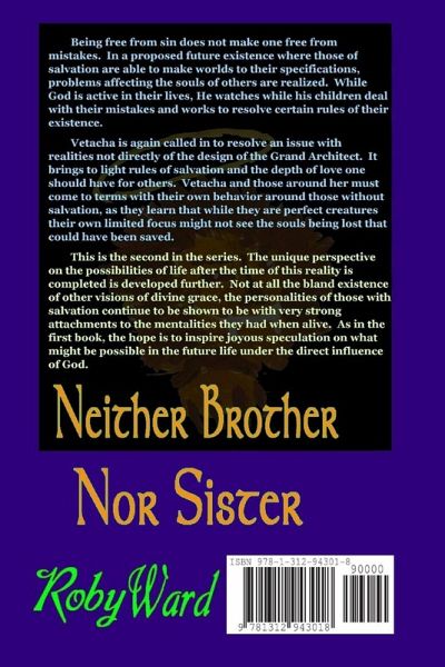 Being free from sin does not make one free from mistakes. In a proposed future existence where those of salvation are able to make worlds to their specifications, problems affecting the souls of others are realized. While God is active in their lives, He watches while his children deal with their mistakes and works to resolve certain rules of their existence. Vetacha is again called in to resolve an issue with realities not directly of the design of the Grand Architect. It brings to light rules of salvation and the depth of love one should have for others. Vetacha and those around her must come to terms with their own behavior around those without salvation, as they learn that while they are perfect creatures, their own limited focus might not see the souls being lost that could have been saved.