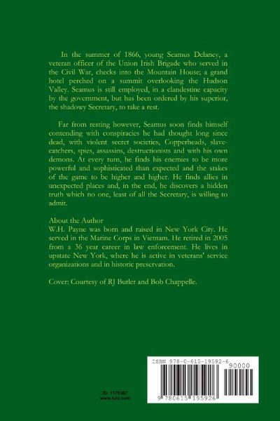 In 1866, after service with the Irish Brigade in the Civil War, Seamus Delaney arrives at a famous and luxurious Catskill Mountain resort. He is under orders from his employer, the shadowy Secretary, to "rest." He soon finds that far from enjoying a rest, he is immersed in the murderous conflict that gave rise to the War and which persists in a tortured Nation.