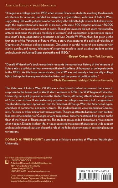 This book tells the story of The Veterans of Future Wars (VFW), a student movement that attracted widespread support in a short few months in 1936. Despite its short life, it was a successful movement that attracted wide support and caused serious discussion about the role of the federal government in providing bonuses to veterans. It focused American attention on the bonus issue, which had been a political issue for many years.