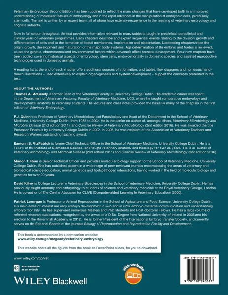 Veterinary Embryology, 2nd Edition, has been updated to reflect the many changes that have developed in the field; the text has been fully revised and expanded and is now in full colour and many pedagogical features and a companion website have been developed.