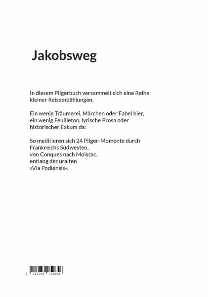 In diesem Pilgerbuch versammelt sich eine Reihe kleiner Reiseerzählungen, unterhaltsam, spannend, berührend, humorvoll, informativ, Ein wenig Träumerei, Märchen oder Fabel hier, ein wenig Feuilleton, lyrische Prosa oder historischer Exkurs da - so meditieren sich 24 Pilger-Momente durch Frankreichs Südwesten, zwischen Conques und Moissac, entlang der uralten »Via Podiensis«.