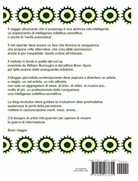 Pornografia, pedofilia, prostituzione, tratta di esseri umani... madri assassine, omicidi-suicidi, suicidi collettivi, psicofarmaci, gioventù bruciata... cambiamenti climatici, globalizzazione, crisi economica... robotica, nanotecnologia, biologia sintetica, organismi geneticamente modificati... chirurgia estetica, life exension, transumanesimo, postumanesimo... mass-media, iper-realtà, mondi virtuali... Morte di Dio, Apocalisse, la profezia dei Maya... In un unico volume di 700 pagine, il meglio del blog cult "viaggioallucinante2punto0", un esperimento di critica e contro-informazione in stile Web 2.0, un viaggio dionisiaco nel lato oscuro del villaggio globale. "La verità è un viaggio allucinate".
