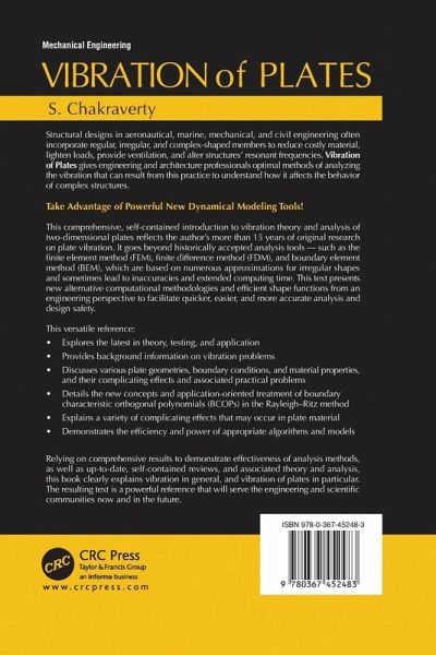 Preface Acknowledgments Chapter 1 Background of Vibration Chapter 2 Methods of Analysis for Vibration Problems Chapter 3 Vibration Basics for Plates Chapter 4 Exact, Series-Type, and Approximate Methods for Transverse Vibration of Plates Chapter 5 Development of Characteristic Orthogonal Polynomials (COPs) in Vibration Problems Chapter 6 Boundary Characteristic Orthogonal Polynomials (BCOPs) in Vibration of Plates Chapter 7 Transverse Vibration of Elliptic and Circular Plates Chapter 8 Triangular Plates Chapter 9 Rectangular and Skew Plates Chapter 10 Circular Annular and Elliptic Annular Plates Chapter 11 Plates with Nonhomogeneous Material Properties Chapter 12 Plates with Variable Thickness Chapter 13 Plates with Orthotropic Material Properties Chapter 14 Plates with Hybrid Complicating Effects Index