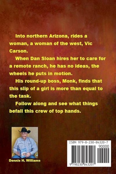 Into northern Arizona, rides a woman, a woman of the west, Vic Carson. When Dan Sloan hires her to care for a remote ranch, he has no ideas, the wheels he puts in motion. His round-up boss, Monk, finds that this slip of a girl is more than equal to the task. Follow along and see what things befall this crew of top hands.