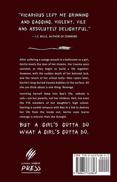 After suffering a savage assault in a bathroom as a girl, Gertie meets the man of her dreams. Her trauma soon vanishes as they begin to build a life together. However, with the sudden death of her beloved Jack, and the return of her school bully-Bea-years later, Gertie's long-buried trauma bubbles to the surface. All the think is one thing: Revenge. Inserting herself into Bea's life, nobody is safe-not her parents, not her children. Hell, not even the pTA members of her daughter's high school. Starting a sordid romance with Bea in a bid to destroy her life from the inside out, Gertie soon learns revenge is messier than she thought. BUT A GIRLS' GOTTA DO WHAT A GIRL'S GOTTA