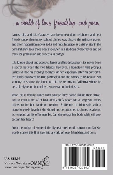 James Laird and Lola Caraway have been next door neighbors and best friends since elementary school. James was always the ultimate player, and after graduation moves to LA and finds his place as a rising star in the porn industry. Lola, three years younger, is a studious overachiever and on track for graduation and success in college. Lola knows about and accepts James and his debauchery; it's never been a secret between the two friends. However, a hometown visit prompts James to face his evolving feelings for her, especially after his conservative family discovers his true profession and she comes to his rescue. Not wanting to seduce the innocent Lola, he returns to California, where he sets his sights on becoming a superstar in the industry. While Lola is visiting James from college, they dance around their attraction to each other. After Lola admits she's never had an orgasm, James offers to be her hands-on teacher. A lifetime of friendship with a manwhore tells Lola that she should not get attached to James as a lover, as tempting as his offer may be. Can she please her body while still protecting her heart? From the author of some of the highest rated erotic romance on Smashwords comes this first look into a world of love, friendship...and porn.