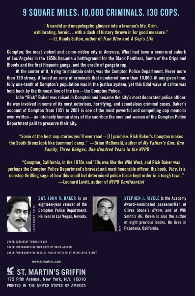 9 square miles. 10,000 criminals. 130 cops. Compton: the most violent and crime-ridden city in America. What had been a semirural suburb of Los Angeles in the 1950s became a battleground for the Black Panthers, home of the Crips and Bloods and the first Hispanic gangs, and the cradle of gangsta rap. At the center of it, trying to maintain order, was the Compton Police Department. Never more than 130 strong, it faced an army of criminals that numbered over 10,000. At any given time, fully one-tenth of Compton's population was in the justice system, yet this tidal wave of crime was held back by the thinnest line of the law--the Compton Police. John R. Baker was raised in Compton and became the city's most decorated police officer. He was involved in some of its most notorious, horrifying, and scandalous criminal cases. Baker's account of Compton from 1951 to 2001 is one of the most powerful and compelling cop memoirs ever written--an intensely human story of sacrifice the price the men and women of the Compton Police Department paid to preserve their city.