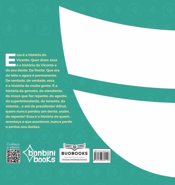 Essa é a história do Vicente e de muita gente que um dia já perdeu um dente, principalmente das crianças que estão em fase de troca de dentes. A leitura dessa aventura se torna ainda mais divertida com as rimas que marcam o seu ritmo, todas elas inteligentemente terminadas em ENTE. A experiência literária e a consciência fonética reunidas em uma aventura que proporcionar prazer e conhecimento ao leitor. Ideal para crianças em fase de alfabetização da língua portuguesa. A obra trata de um tema recorrente entre meninos e meninas de 5 a 9 anos de idade: a fase em que os dentes de leite começam a cair e surgem os dentes definitivos, precisamente. Parece até que eles viram gente... Trata-se de um livro que diz a toda gente: do presidente ao gerente. Afinal, quem nunca sonhou em conhecer a fada do dente?!Perda da primeira dentição, crescimento e amadurecimento, medo de dentista, crenças infantis... Assuntos tratados por esta obra de forma surpreendente. A literatura a serviço da reflexão, abrindo nosso coração e nossa mente. Integra o trabalho de leitura à área de ciências, ativamente! Por ter uma narrativa rimada, a obra ajuda a ampliar a compreensão da língua escrita. No final do livro, um glossário formidável convida o jovem leitor a refletir sobre as palavras, seus significados e sobre como todas elas podem terminar em ¿ENTE¿, curiosamente.Conheça também o livro Princesa Tereza, escrito pelos mesmos autores.Este livro é editado e comercializado no Brasil pela Editora Bamboozinho e internacionalmente pelo selo Bon Bini Books.