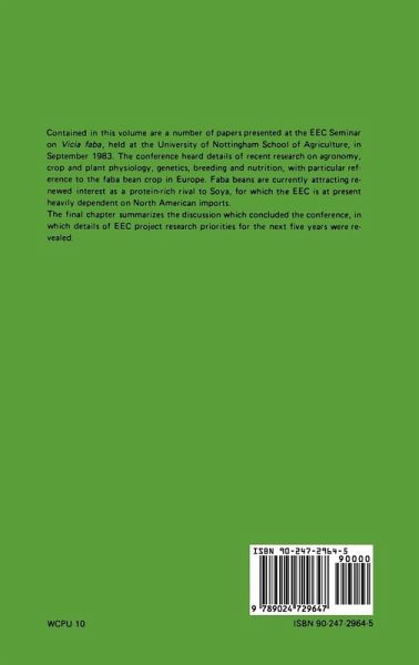 Physiology and Agronomy.- Components of the Yield and Yield of Vicia Faba.- Proposal of a Growth Stages Key for Vicia Faba.- Vascular Development in the Reproductive Tissues of Vicia Faba L..- Growth Habit in Relation to Assimilate Partitioning and Some Consequences for Field Bean Breeding.- Nitrate Reduction in Vicia Faba Grown at Different Temperatures.- Effect of Plant Growth Regulator Combinations on Faba Bean Development and Yield Components.- Effects of Water Stress on Some Growth Parameters and Yields of Field Bean Crops.- Vegetative and Reproductive Growth of Faba Beans (Vicia Faba L.) as Influenced by Water Supply.- The Effect of Irrigation and Bees on the Yield and Yield Components of Vicia Faba L..- Behaviour of Field Bean Lines with a Water Table Maintained at Different Levels.- Evaluation of Seed Metering Devices for Sowing Grain Legumes.- The Effects of Poor Soil Physical Conditions on the Growth and Yield of Vicia Faba.- Effect of Seed Source on Performance of Faba Bean Varieties.- Recent Developments in Forecasting Aphis Fabae Damage and Control, and Its Implications for Other Pests of Vicia Faba.- The Potential of Whole-Crop Vicia Faba for Ensilage.- Some Results Obtained in Belgium on Growth, Yield and Quality of Vicia Faba Harvested in Grain or for Whole Crop Silage.- Influence of Density on the Growth and Development of Winter Field Bean (Vicia Faba).- Results of the Joint Faba Bean and PEA Trials of the Years 1980-1982.- Yield Stability of Faba Beans and Peas in EEC Joint Trials 1980-82.- Faba Beans in China : Some Facts and Personal Observations, Particularly Concerning Virus Diseases.- Breeding and Cytogenetics.- Selection Methods for Yield Improvement in Faba Beans.- Barriers to Interspecific Hybridisation between Vicia Faba and other Speciesof Section Faba.- Breeding for Self-Fertility.- A Design for Testing Some Genotype x Environment Interactions.- Microdensitometric Analysis of Vicia Faba L. Chromosome Images.- Variability Induced by a Dicentric Chromosome in Vicia faba L..- Faba Bean Cytogenetics at Cordoba, Spain.- The Incidence of Ovule Fertilization in Faba Bean Flowers from Commercial Crops and from Experimental Plots of Contrasting Genotypes.- New Developments in Cytoplasmic Male Sterility in Vicia faba L..- Instability of Cytoplasmic Male Sterility in Vicia Faba: Role of Temperature at Meiosis.- Nutrition and Quality.- An Assessment of the Potential for Improving the Nutritive Value of Field Beans (Vicia Faba) - A Progress Report.- Quantitative Measurement of Quality Determining Constituents in Seeds of Different Inbred Lines from a World Collection of Vicia Faba.- Antinutritional and Favism Inducing Factors in Vicia Faba L.: Nutritional Value of Faba Beans; Metabolism and Properties of Vicine, Convicine and Dopa-Glucoside.- Conclusions.- Faba Bean Research in Europe.- Cytogenetics.- General Discussion and Recommendations.- General Discussion and Recommendations.- Dr. IR. G. Dantuma 1924 - 1983.- Dr. IR. G. Dantuma 1924 - 1983.