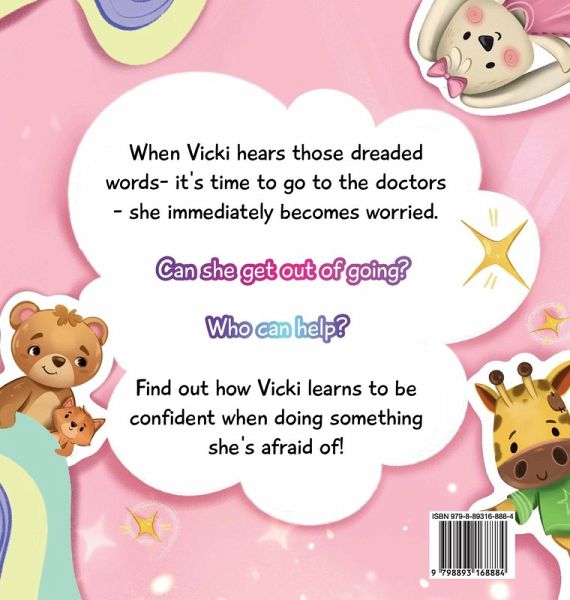 A motivational and heartwarming story for children to overcome their fear of the doctors. When Vicki hears those dreaded words -"It's time to go to the doctor"- her heart sinks. Fearful and anxious, Vicki tries to think of every possible way to avoid the visit. Will she be able to find a way out, or is there someone who can help her overcome her worries? Join Vicki on a heartwarming journey as she discovers the power of self-confidence and learns that sometimes, the things we fear the most aren't as scary as they seem. With the support of her friends and a little bit of courage, Vicki braves the doctor's visit and comes out stronger on the other side.