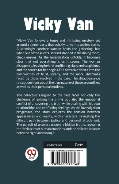 Vicky Van follows a tense and intriguing mystery set around a dinner party that quickly turns into a crime scene. A seemingly carefree woman hosts the gathering, but when one of the guests is found stabbed in the dining room, chaos ensues. As the investigation unfolds, it becomes clear that not everything is as it seems. The woman disappears, leaving behind conflicting clues and suspicions, and the search for her begins. The narrative delves into the complexities of trust, loyalty, and the moral dilemmas faced by those involved in the case. The disappearance raises questions about the true nature of those around her, as well as their personal motives. The detective assigned to the case faces not only the challenge of solving the crime but also the emotional conflict of uncovering the truth while dealing with his own relationships and conflicting feelings. As the investigation progresses, the story explores the tension between appearances and reality, with characters navigating the difficult path between justice and personal attachment. The pursuit of answers uncovers hidden truths, revealing the intricacies of human emotions and the delicate balance between right and wrong.