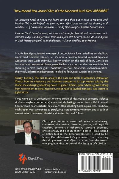 In 1981 Sun Myung Moon's message of unconditional love revitalizes an idealistic, embittered disabled veteran. But it's more a Bushido-flavored Imperial Japanese Caesarism than God's individual liberty. Broken on the rack of faith, Chris locks horns with victimocracy's blame game. He hits rock bottom then an agonizing but liberating rebirth from guilt, domestic violence, fanaticism, excommunication, shipwreck, a shattering depression, imploding faith, near suicide, and shirking. Snarky. Exciting. An intimate insider's account. The first to analyze the nuts and bolts of America's Unification Church from its missionary and business trenches to its top leaders told by the shark's meal charging headlong down its gullet. Chris' 21-year odyssey gravels along from recruitment to serial rejection, street hack to lauded manager, livid victim to joyful victor. If you were ever a Unificationist or some stripe of idealogue; a domestic violence victim or maybe a perpetrator; a near-suicide feeling crushed 'neath life's ironshod boot or love's heartless hate; or just can't stop shooting holes in your feet, this book might open your awareness to paralyzing, scapegoating victimism and a path of transitioning to your own life-giving victorism. It couldn't hurt.
