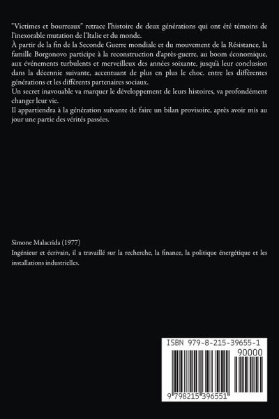"Victimes et bourreaux" retrace l'histoire de deux générations qui ont été témoins de l'inexorable mutation de l'Italie et du monde. À partir de la fin de la Seconde Guerre mondiale et du mouvement de la Résistance, la famille Borgonovo participe à la reconstruction d'après-guerre, au boom économique, aux événements turbulents et merveilleux des années soixante, jusqu'à leur conclusion dans la décennie suivante, accentuant de plus en plus le choc. entre les différentes générations et les différents partenaires sociaux. Un secret inavouable va marquer le développement de leurs histoires, va profondément changer leur vie. Il appartiendra à la génération suivante de faire un bilan provisoire, après avoir mis au jour une partie des vérités passées.