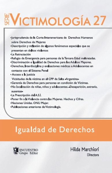 La serie victimología reúne publicaciones científicas referidas a los difíciles y complejos procesos que provoca el delito. Estos son abordados en trabajos e investigaciones de destacados especialistas en Victimología y Criminología que pertenecen a Universidades, Centros asistenciales y de ayuda a las víctimas, así como a Investigadores de distintas disciplinas cuyo objetivo principal es la comprensión de las víctimas y la búsqueda de respuestas institucionales, sociales y culturales. La Serie VICTIMOLOGÍA reúne publicaciones especializadas y de actualización; está dirigida a profesionales del Derecho, Psicología, Criminología, Medicina, Sociología, Trabajo Social; a personal policial, penitenciario, asistentes terapéuticos y a personas que trabajan, a nivel comunitario, en la prevención del delito.