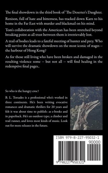 The devastating conclusion to the series 'The Deserter's Daughter.' Tom's collaboration with the American has been stretched beyond breaking point as all trust between them is irretrievably broken. Renison, full of hate and bitterness, has tracked Karn to his home in the Far East with murder and blackmail on his mind. A trail of bodies leads to a fateful meeting of hunter and prey. Who will survive the dramatic showdown on the most iconic of stages -- the harbour of Hong Kong? As for those who have been broken and damaged in the resulting violence, some -- but not all -- will find healing in the redemptive final pages. (Word cound approximately 58000)