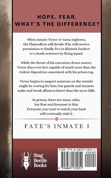Everyone you trust to watch your back will eventually stab it. My parents had really skudged up. The hatred for who they were and what they'd done far outlived them, almost growing as time passed. Who hated them the most? Not the Wardens. Not the Chancellors on The Judgement Board. Not even the people in Khizmit who'd been subjected to their crimes. The person who hated them most was the sum of all their parts, including, I'd been told, their proclivity for violent crime. Me. Victor-27. Khizmit had captured and killed the criminals, my mother included, and we-the lurpers, the offspring of the criminals-were trapped in this cold hell, not for the crimes of our parents, but for the crimes we were sure to commit. What a load of slag! None of it mattered anyway. All that mattered to me was graduation. I couldn't do it alone. But if there was one thing I'd learned in prison, it was this: Everyone you trust to watch your back will eventually stab it.