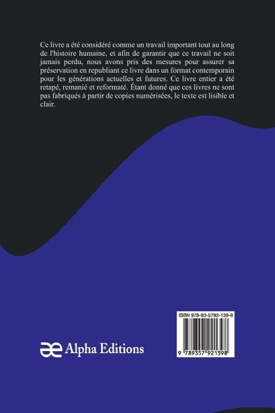 Victor Hugo, son oeuvre poétique, un livre classique et rare qui a été considéré comme essentiel tout au long de l'histoire de l'humanité, pour que cet ouvrage ne soit jamais oublié, nous chez Alpha Editions avons fait des efforts pour sa préservation en rééditant ce livre dans un format moderne pour les générations présentes et futures. Tout ce livre a été reformaté, retapé et conçu. Ces livres ne sont pas constitués de copies numérisées de leur ¿uvre originale et le texte est donc clair et lisible.
