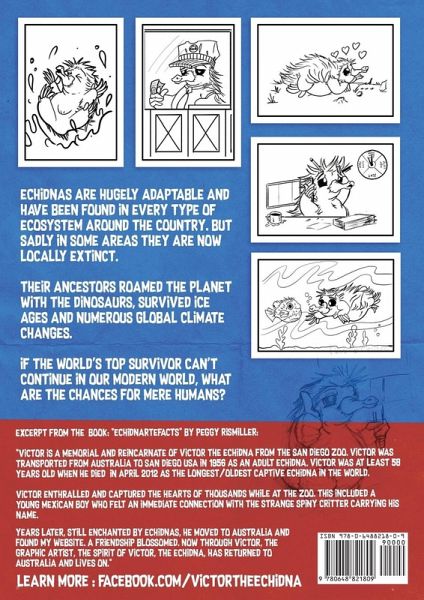 Colour, Learn and Help rebuild echidna research, with your friend Victor!! At the beginning of 2020 Australia experienced some of the worst bushfires in history. Although most of the country was severely affected, Kangaroo Island was amongst the most damaged.In an unparalleled move of kindness and solidarity, the people joined to help each other in every way they could.However after all the dust had settled, some wildlife organisations were left on their own to rebuild. "Pelican Lagoon", and "Echidna Care" have been a beacon of conservation and study for wildlife animals in Kangaroo Island, and home to a vast biodiversity and many endangered species. This is my personal way of saying thank you to those amazing people that fight through the fire and rain to keep those species alive for our children, even when we sometimes seem bent on destroying them for good. All the proceedings of this book will go to help their work and the mission they stand for. Please help by buying this book, sharing it with friends and learning about one of our most special and dearest creature, "The Echidna".