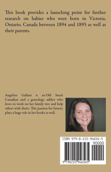 This book provides a launching point for further research on babies who were born in Victoria, Ontario, Canada between 1894 and 1895 as well as their parents.