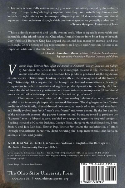 Victorian Dogs, Victorian Men: Affect and Animals in Nineteenth-Century Literature and Culture by Keridiana W. Chez is the first monograph located at the intersection of animal and affect studies to examine how gender is produced via the regulation of interspecies relationships. Looking specifically at the development of the human-dog relationship, Chez argues that the bourgeoisie fostered connections with canine companions in order to mediate and regulate gender dynamics in the family. As Chez shows, the aim of these new practices was not to use animals as surrogates to fill emotional vacancies but rather to incorporate them as "emotional prostheses." Chez traces the evolution of the human-dog relationship as it developed parallel to an increasingly imperialist national discourse. The dog began as the affective mediator of the family, then addressed the emotional needs of its individual members, and finally evolved into both "man's best friend" and worst enemy. By the last decades of the nineteenth century, the porous human-animal boundary served to produce the "humane" man: a liberal subject enabled to engage in aggressive imperial projects. Reading the work of Charles Dickens, George Eliot, Margaret Marshall Saunders, Bram Stoker, and Jack London, Victorian Dogs, Victorian Men charts the mobilization of affect through transatlantic narratives, demonstrating the deep interconnections between animals, affect, and gender.