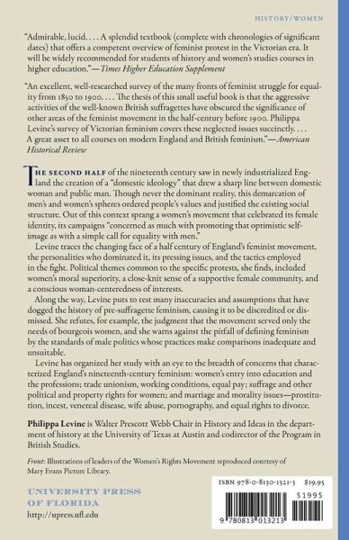 The second half of the nineteenth century saw in newly industrialized England the creation of a “domestic ideology” that drew a sharp line between domestic woman and public man. Though never the dominant reality, this demarcation of men’s and women’s spheres ordered people’s values and justified the existing social structure. Out of this context sprang a women’s movement that celebrated its female identity, its campaigns “concerned as much with promoting that optimistic self-image as with a simple call for equality with men.” Levine traces the changing face of a half century of England’s feminist movement, the personalities who dominated it, its pressing issues, and the tactics employed in the fight. Political themes common to the specific protests, she finds, included women’s moral superiority, a close-knit sense of a supportive female community, and a conscious woman-centeredness of interests. Along the way, Levine puts to rest many inaccuracies and assumptions that have dogged the history of presuffragette feminism, causing it to be discredited or dismissed. She refutes, for example, the judgement that the movement served only the needs of bourgeois women, and she warns against the pitfall of defining feminism by the standards of a male politics whose practices make comparisons inadequate and unsuitable. Levine has organized her study with an eye to the breadth of concerns that characterized England’s nineteenth-century feminism: women’s entry into education and the professions; trade unionism, working conditions, equal pay; suffrage and other political and property rights for women; marriage and morality issues―prostitution, incest, venereal disease, wife abuse, pornography, and equal rights to divorce.