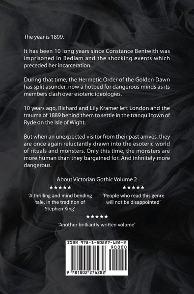 The year is 1899. It has been 10 long years since Constance Bentwith was imprisoned in Bedlam and the shocking events which preceded her incarceration. During that time, the Hermetic Order of the Golden Dawn has split asunder, now a hotbed for dangerous minds as its members clash over esoteric ideologies. 10 years ago, Richard and Lily Kramer left London and the trauma of 1889 behind them to settle in the tranquil town of Ryde on the Isle of Wight. But when an unexpected visitor from their past arrives, they are once again reluctantly drawn into the esoteric world of rituals and monsters. Only this time, the monsters are more human than they bargained for. And infinitely more dangerous.