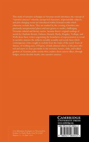 This study of narrative technique in Victorian novels introduces the concept of 'narrative annexes' whereby unexpected characters, impermissible subjects and plot-changing events are introduced within fictional worlds which otherwise exclude them. They are marked by the crossing of borders into previously unrepresented places and new genres or modes, challenging Victorian cultural and literary norms. Suzanne Keen's original readings of novels by Charlotte Brontë, Dickens, Disraeli, Hardy, Kingsley, Trollope, and Wells show these writers negotiating the boundaries of representation to reveal in narrative annexes the subjects (notably sexuality and social class) which contemporary critics sought to exclude from the realm of the novel. Fears of disease, of working men, of Popery, of dark-skinned 'others', of the poor who toil and starve in close proximity to the rectories, homes, clubs and walled gardens of Victorian polite society draw readers down narrow alleys, through thorny hedges, across desolate heaths, into narrative annexes.